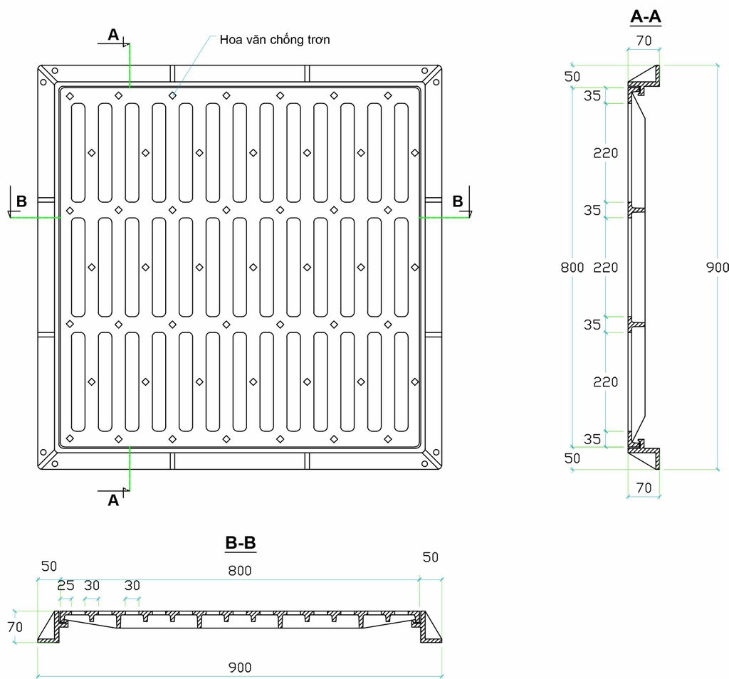 Các sản phẩm nắp hố ga, song chắn rác, nắp bể cáp được thiết kế sản xuất với hoa văn sắc nét, bề mặt mịn, thi công nhẹ nhàng và đặc biệt là giá thành hạ hơn nhiều so với bộ sản phẩm cùng loại. Ngoài những sản phẩm có sẵn với các kích thước, mẫu mã, tải trọng, mầu sắc đa dạng. Sản phẩm do chúng tôi xản xuất có thể hoàn toàn theo thiết kế riêng của khách hàng như mầu sắc, biểu tượng, Logo nổi, hình vẽ, địa danh thương hiệu tùy ý…