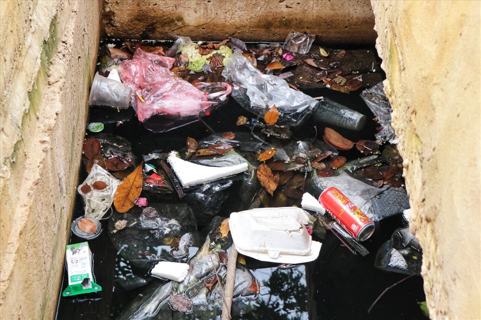 Không những vậy, việc mất nắp hố gas khiến tình trạng ô nhiễm môi trường diễn ra phức tạp. Nhiều rác thải, lon bia, vỏ hộp sữa, túi nilong đã bị trôi xuống cống gây tắc cống.