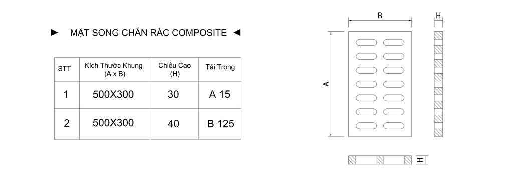 Song chắn rác Composite KT: 500x300x30mm | hàng có sẵn.