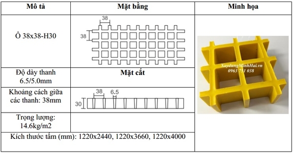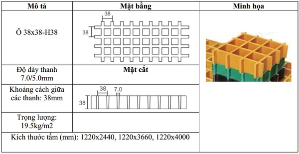 Quy cách : Ô lưới 38x38
